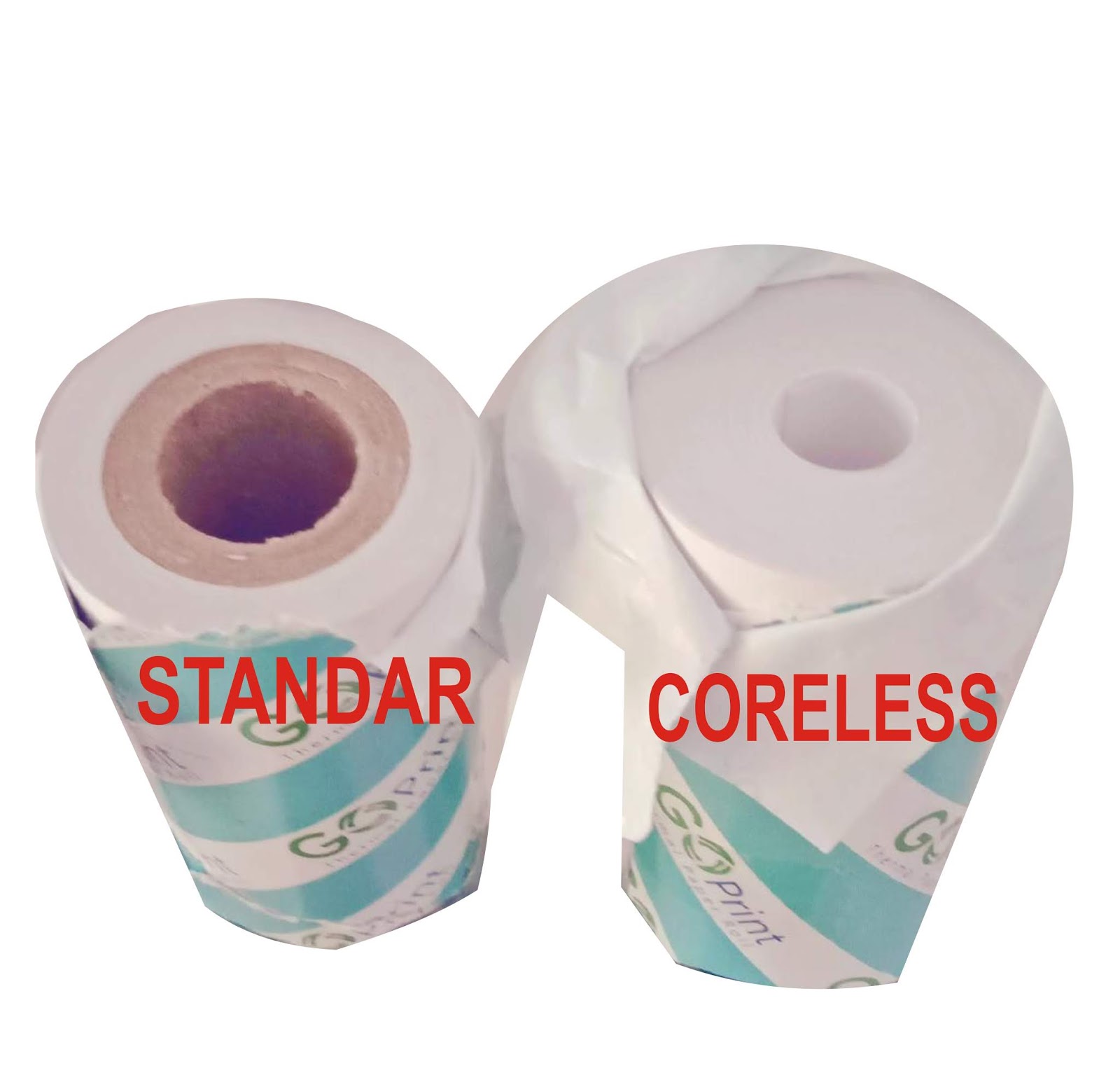 Kertas thermal yang kami sediakan saat ini Polos dengan ukuran 57x30 mm coreless.
